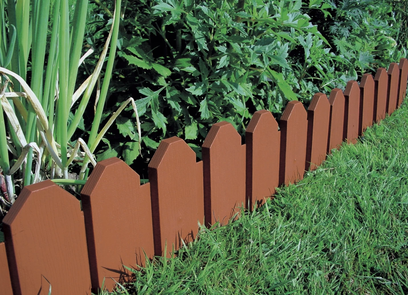 Im Handumdrehen ein kleiner Gartenzaun: 4 Elemente aus flexiblem Kunststoff mit Holzmaserung. Gesamtlänge 240 cm, H 16 cm. Komplett mit Befestigungsstiften.