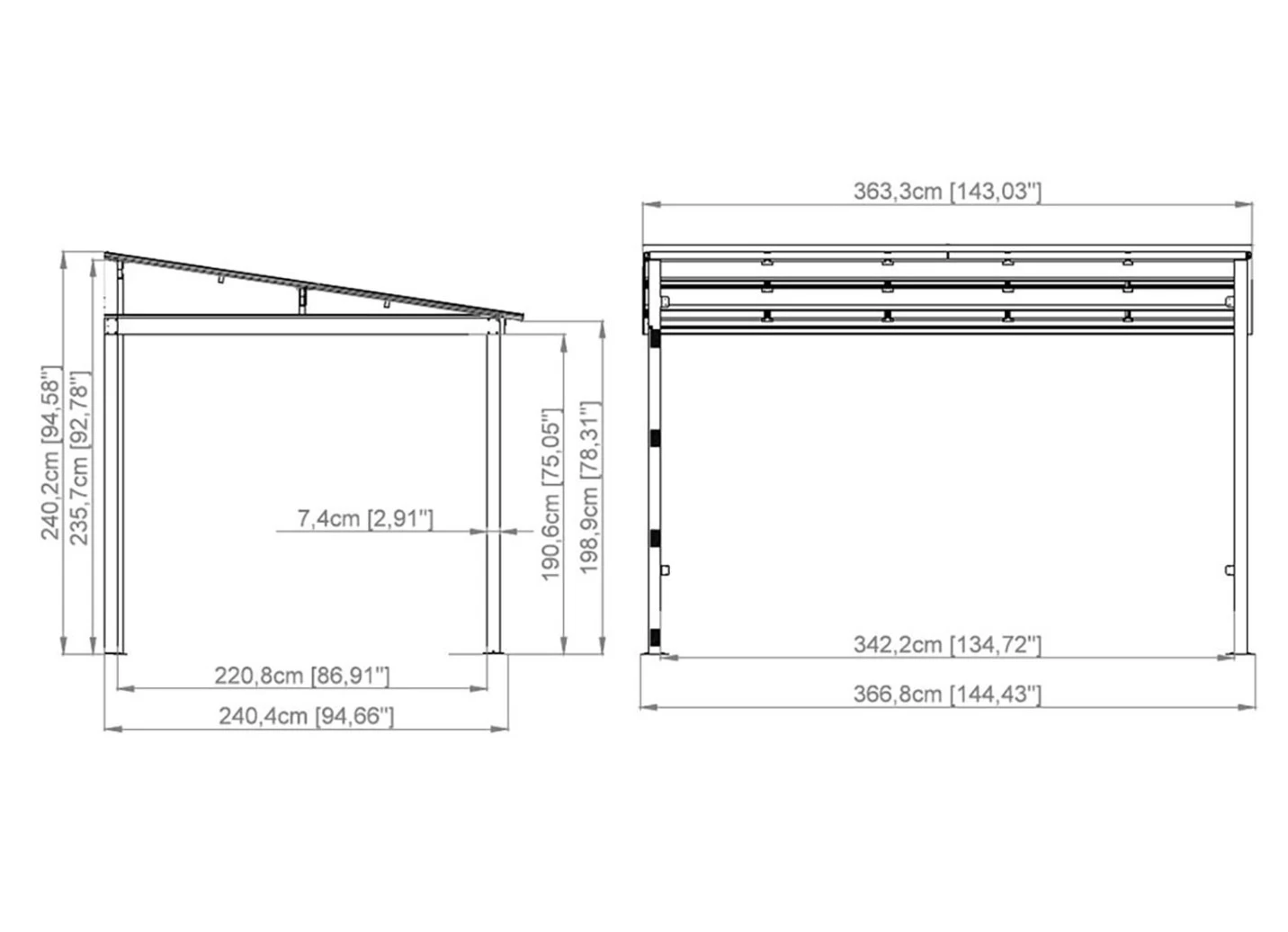 Anbaupavillon St. Barthelemy von SOJAG in den Maßen B364xH240xT248 cm und in Anthrazit.