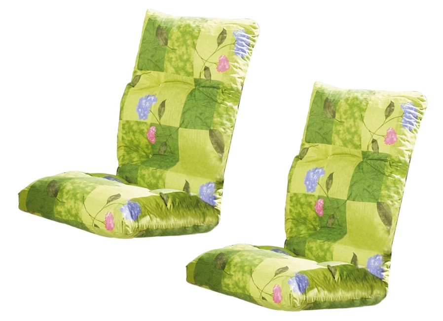 Bequeme Auflagen mit Knopfsteppung in der Ausführung Relax-Klappsessel-Auflage und in Blau.