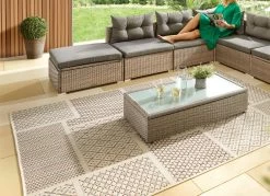Ob drinnen oder draußen: Diese strapazierfähigen und pflegeleichten Brücken und Teppiche eignen sich perfekt für den Balkon, Ihre Terrasse oder den Garten und sind gegen alle Wetterlagen gewappnet. Aber auch in Ihrem Wohnbereich sorgen sie für Gemütlichkeit. Bei stärkerer Verschmutzung ist eine zusätzliche Reinigung mit Wasser möglich. Gesamthöhe: 5 mm. Qualität: Flachgewebe aus 100% Polypropylen. Für Fußbodenheizung geeignet