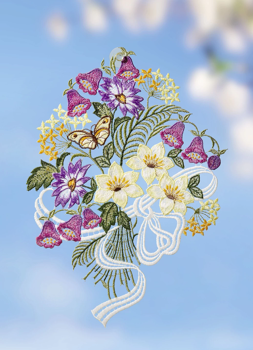 Fensterbild Mit Blumenstrauß Aus Plauener Spitze