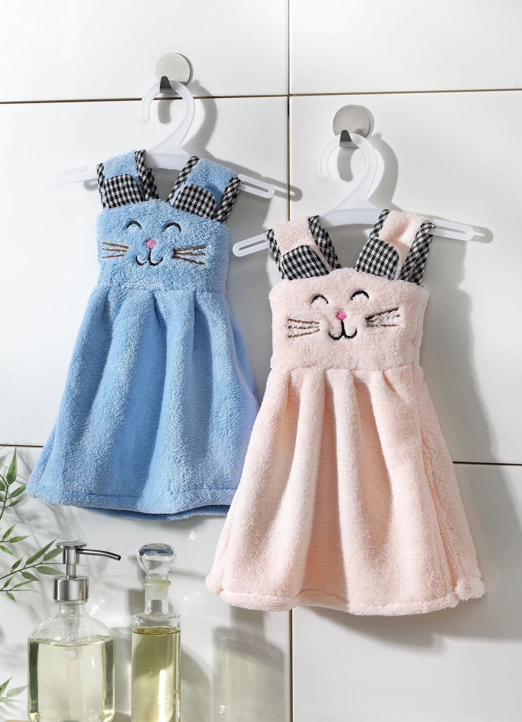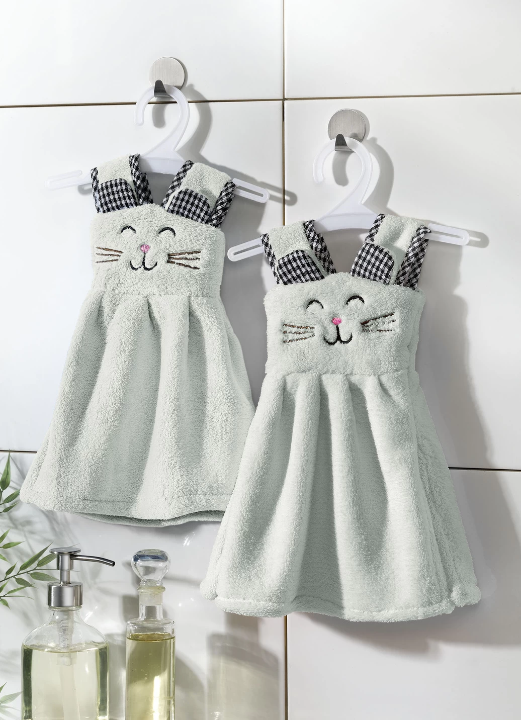 Die perfekte Geschenkidee sind diese süßen Gästehandtücher im 2er-Set. Auf kleinen Kleiderbügeln drapiert und mit einem Katzengesicht liebevoll bestickt sind sie ein kuschelweiches Accessoire in Ihrem Zuhause.