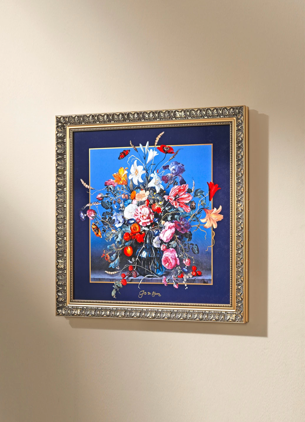 Die Kunstwerke von Jan Davidsz de Heem mit Blumenarrangements erwecken den Eindruck als stünde man tatsächlich vor einer Vase mit frisch gepflückten Blumen. Mit 24 Karat Echtgoldauflage kann sich das Bild Sommerblume sehen lassen. Im Hause Goebel aus Porzellan mit Holzrahmen gefertigt und auf 999 Stück limitiert. Mit Zertifikat. Maße: B71xH71xT3,5 cm.