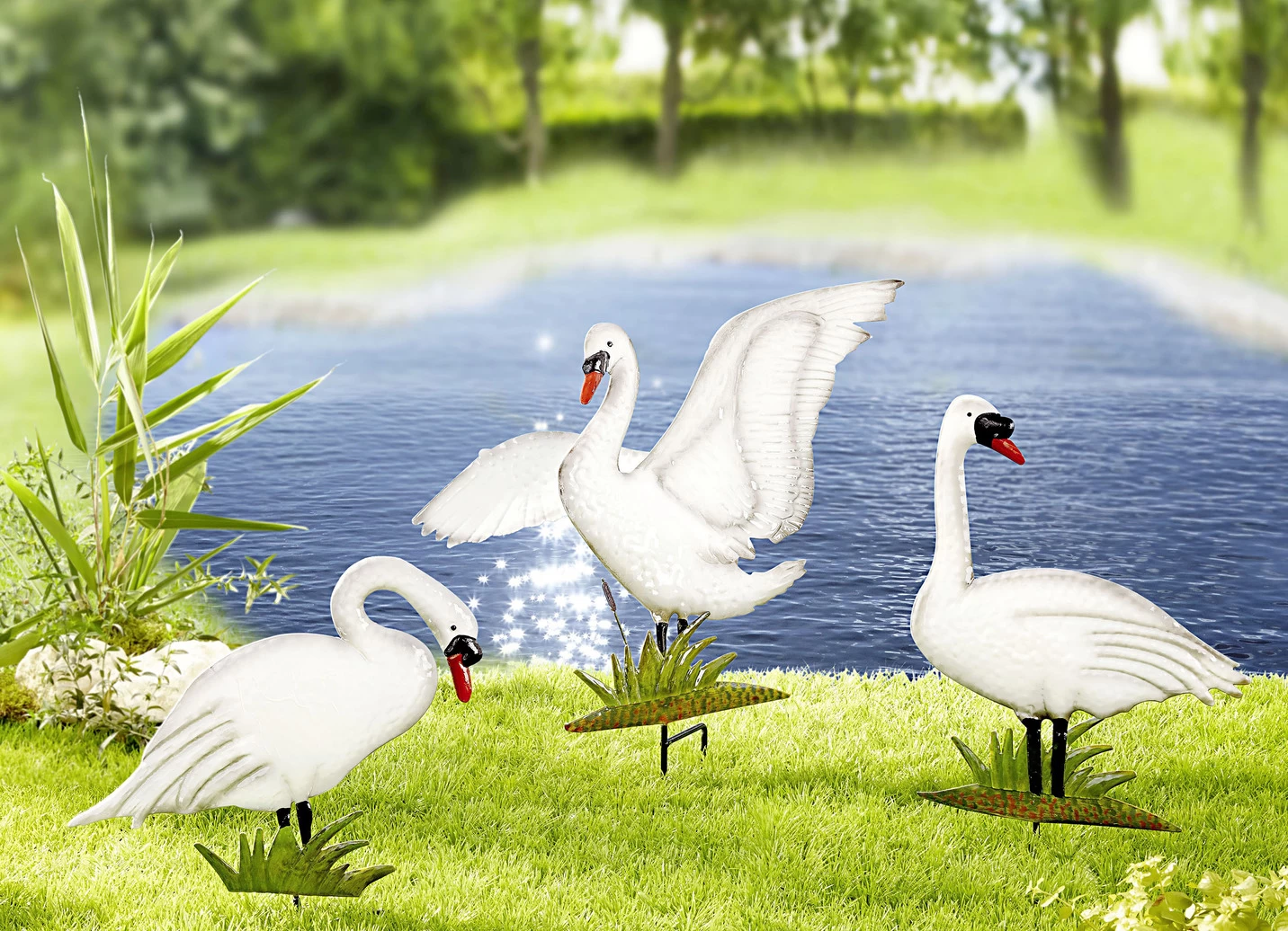 Handbemalte Gartenstecker in Form von Schwänen, 3er-Set