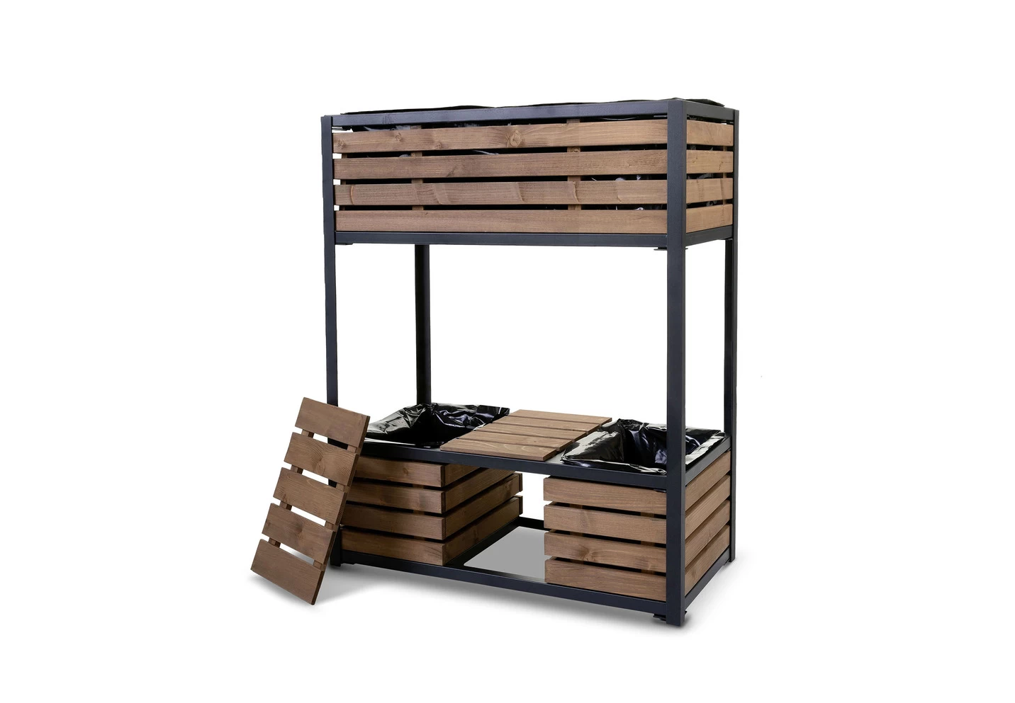 Einfache und schnelle Montage ohne Schrauben durch Steck- und Klemmsystem. Inklusive Folie zum Auslegen der Kästen, die auch zur Aufbewahrung von Gartenutensilien verwendbar sind. Durch die Höhe wird der Schneckenbefall deutlich reduziert. Aus pulverbeschichtetem Metall und Nadelholz. Maße: B80xH100xT40 cm