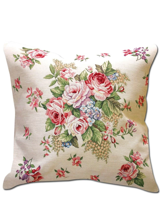 Kissenbezug mit Rosen-Motiv in der Ausführung Dessin „Rosen“ und in Bunt.