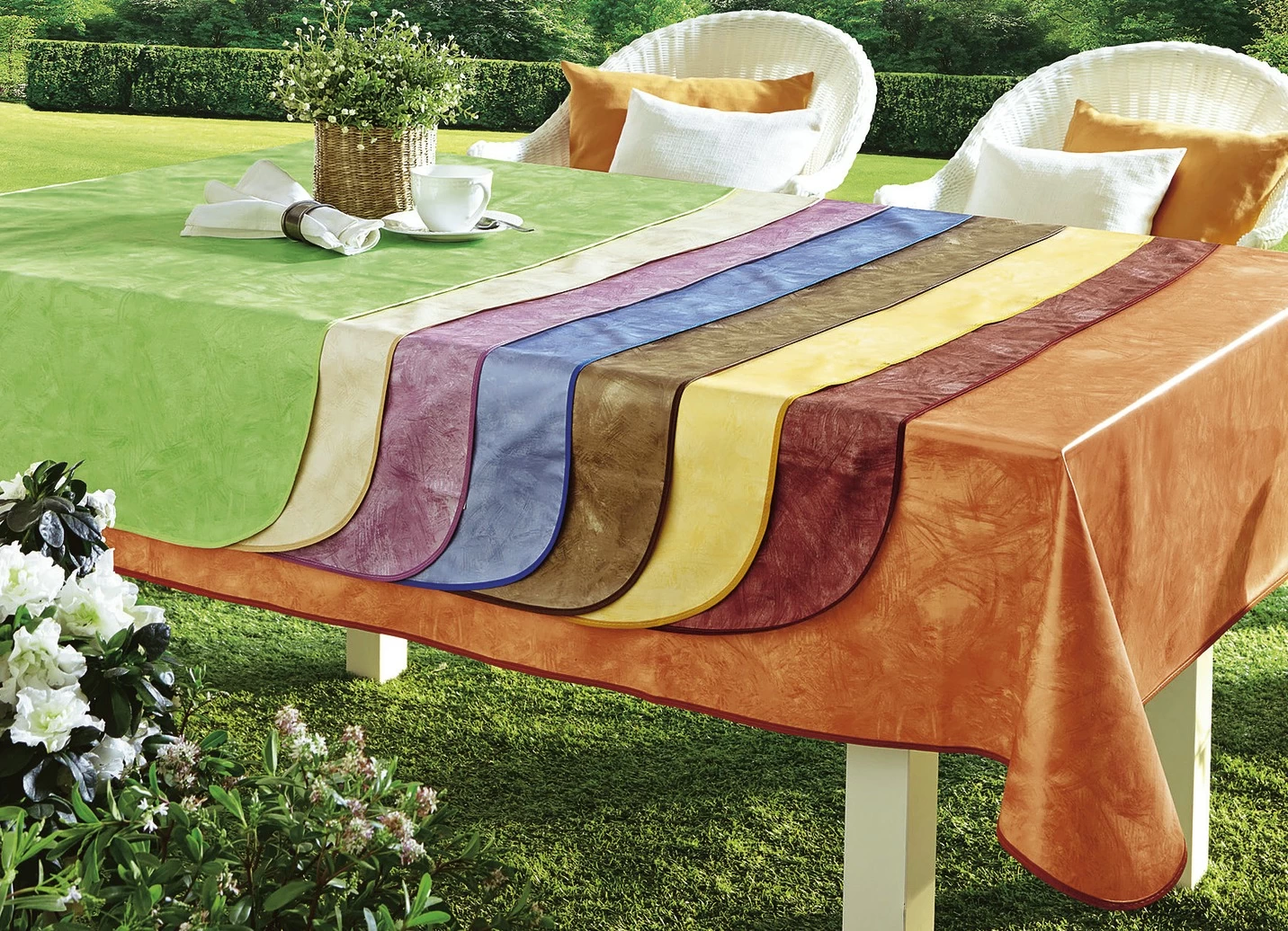 Klassisch marmorierte Wachstuch-Tischdecke mit farblich passendem Paspelband. Pflegeleichte Qualität: abwaschbarer PVC, phthalatfrei.