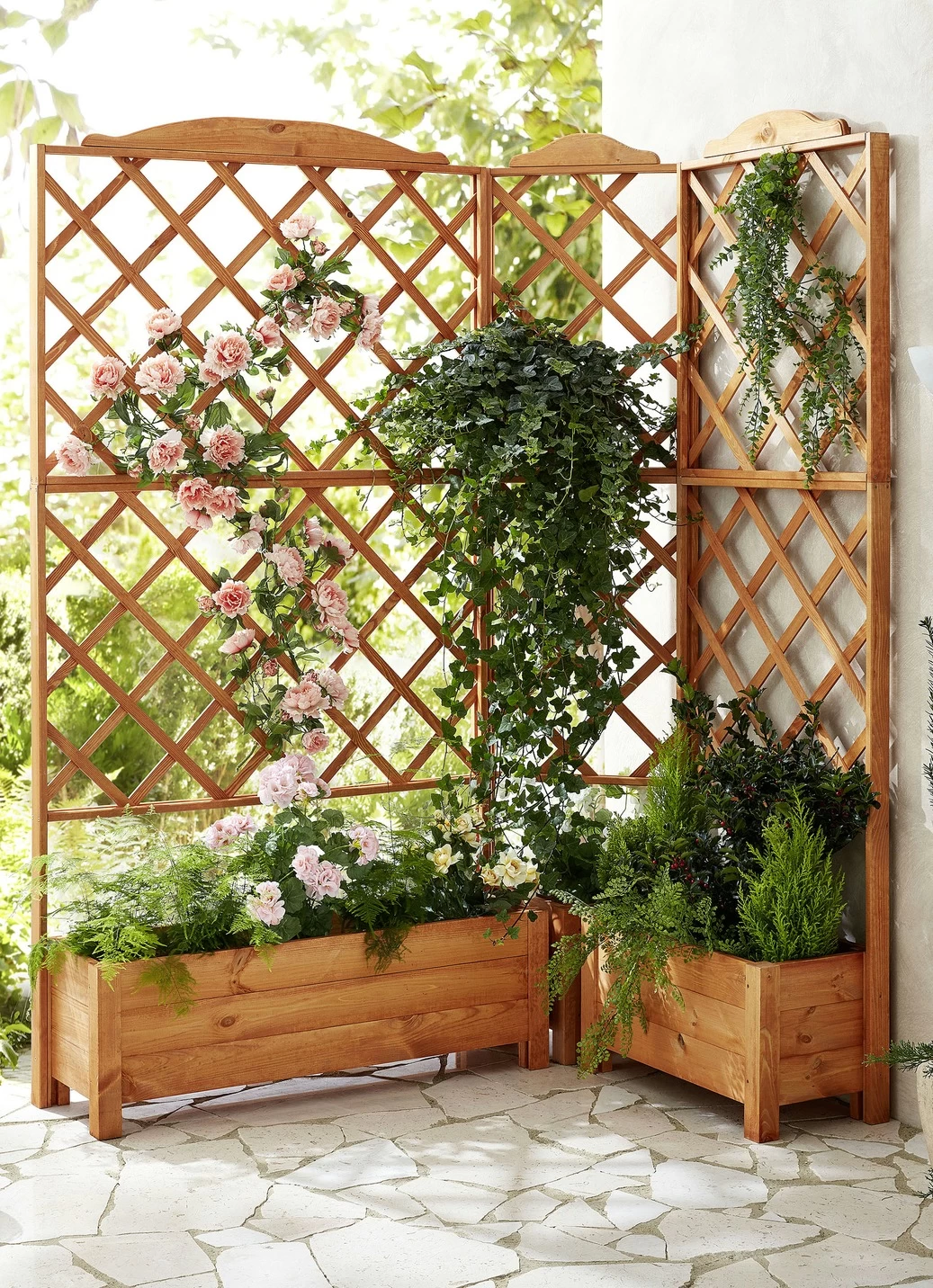 Pflanz-Spalier – attraktive Möglichkeit zur individuellen Gestaltung und dekorativer Sichtschutz. Stabile Ausführung aus imprägniertem, europäischem Kiefernholz. Mit Aufbau-Anleitung
