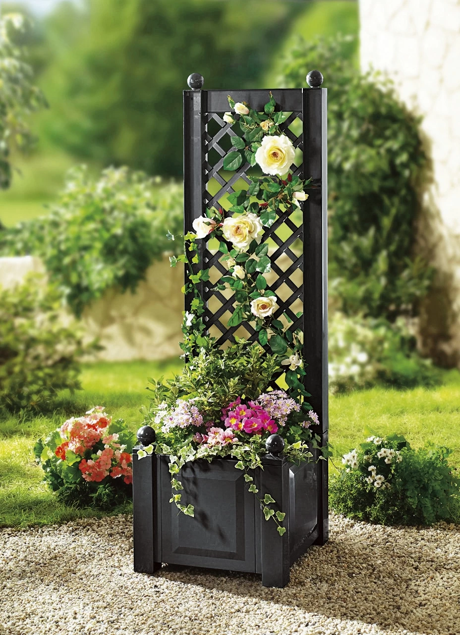 Diese praktischen und dekorativen Pflanzkästen mit Rankgitter sind für Kübel- und Rankpflanzen geeignet und überdies ein wirksamer Schutz vor neugierigen Blicken.