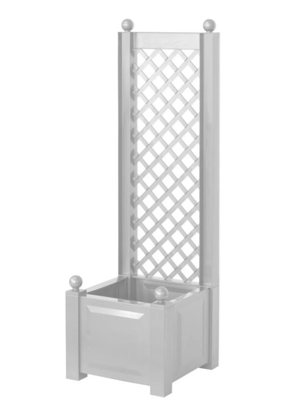 Pflanzkasten mit Spalier aus robustem Kunststoff in der Ausführung Pflanzkasten mit Rankgitter, schmal und in Weiss.