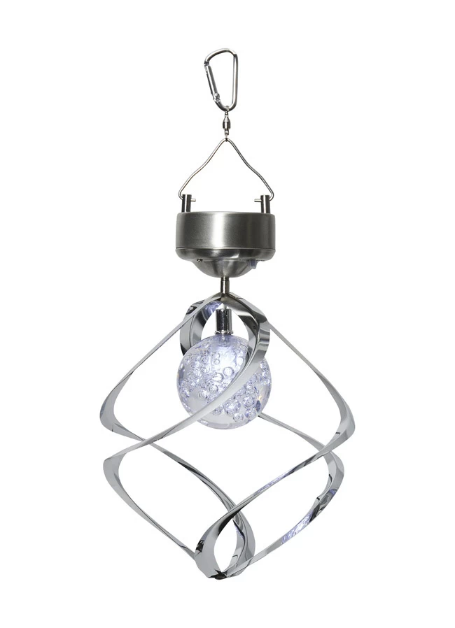 Solar-LED-Mobile aus rostfreiem Aluminium in Silber.