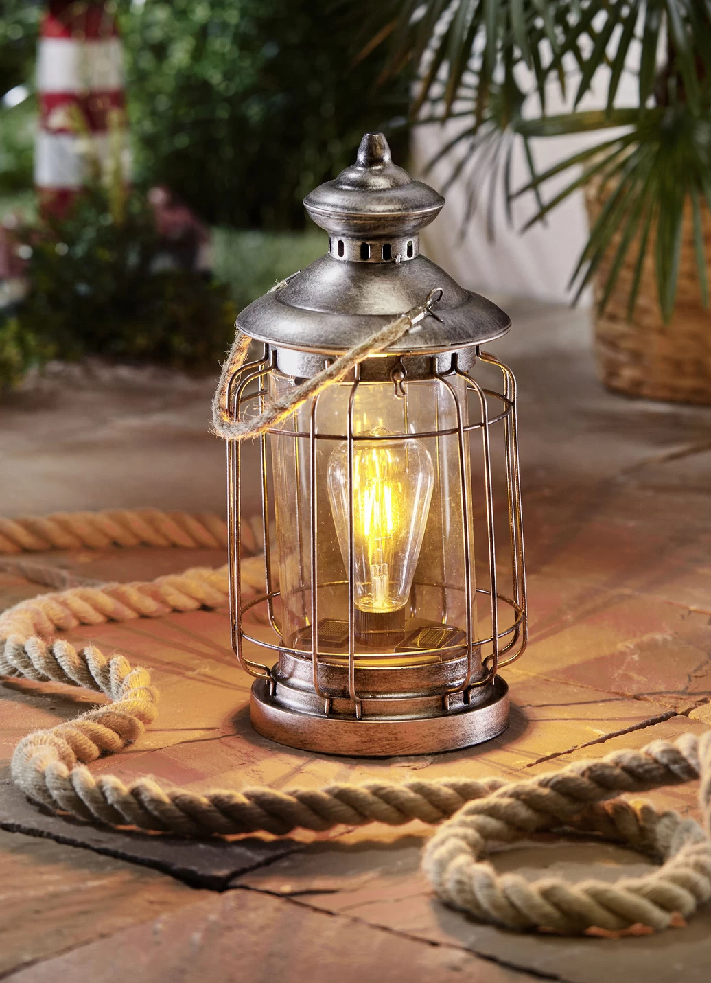 Für romantische Stimmung sorgt diese aufsehenerregende Schiffslaterne, die sowohl auf dem Tisch als auch hängend eine warme und gemütliche Atmosphäre schafft. Dafür sorgen die 22 LEDs bei Dunkelheit dank Solartechnik. Aus Metall und Kunststoff gefertigt.