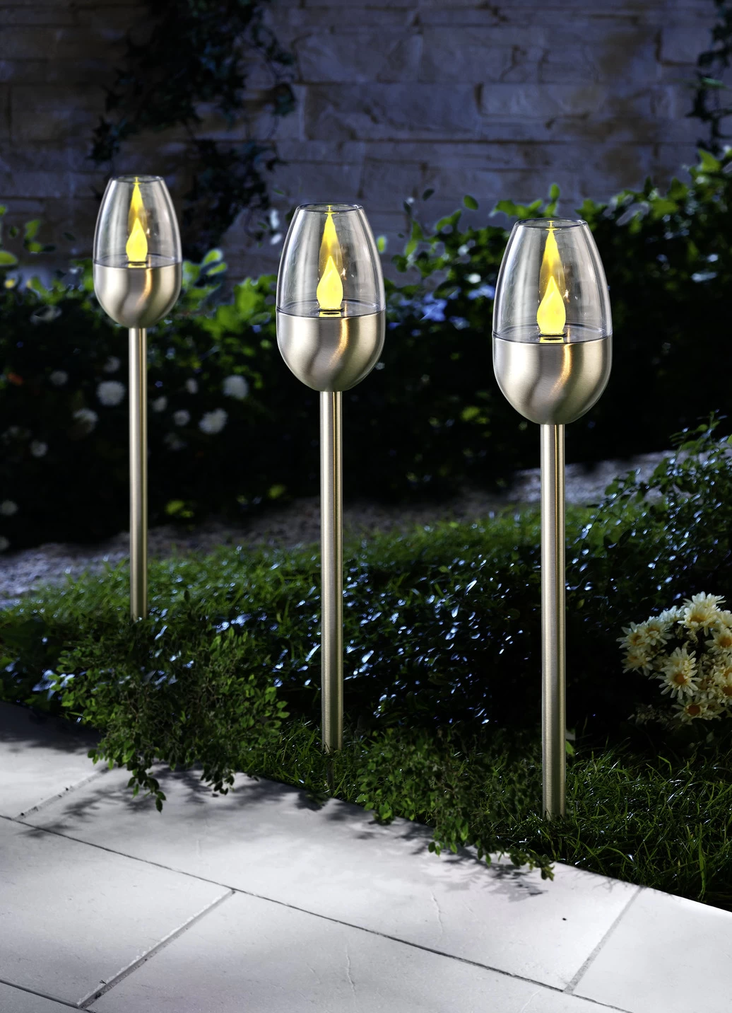 Mit diesem edlen 3er-Set Solarleuchten bringen Sie Licht ins Dunkle. Dank Solartechnik schalten sie sich nach Einbruch der Dämmerung automatisch ein. Aus Edelstahl und Kunststoff.
