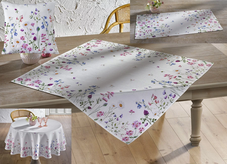 Tisch- und Raumdekoration mit Wiesenblumen-Dessin in Größe 110 (Läufer, 40x 90 cm).