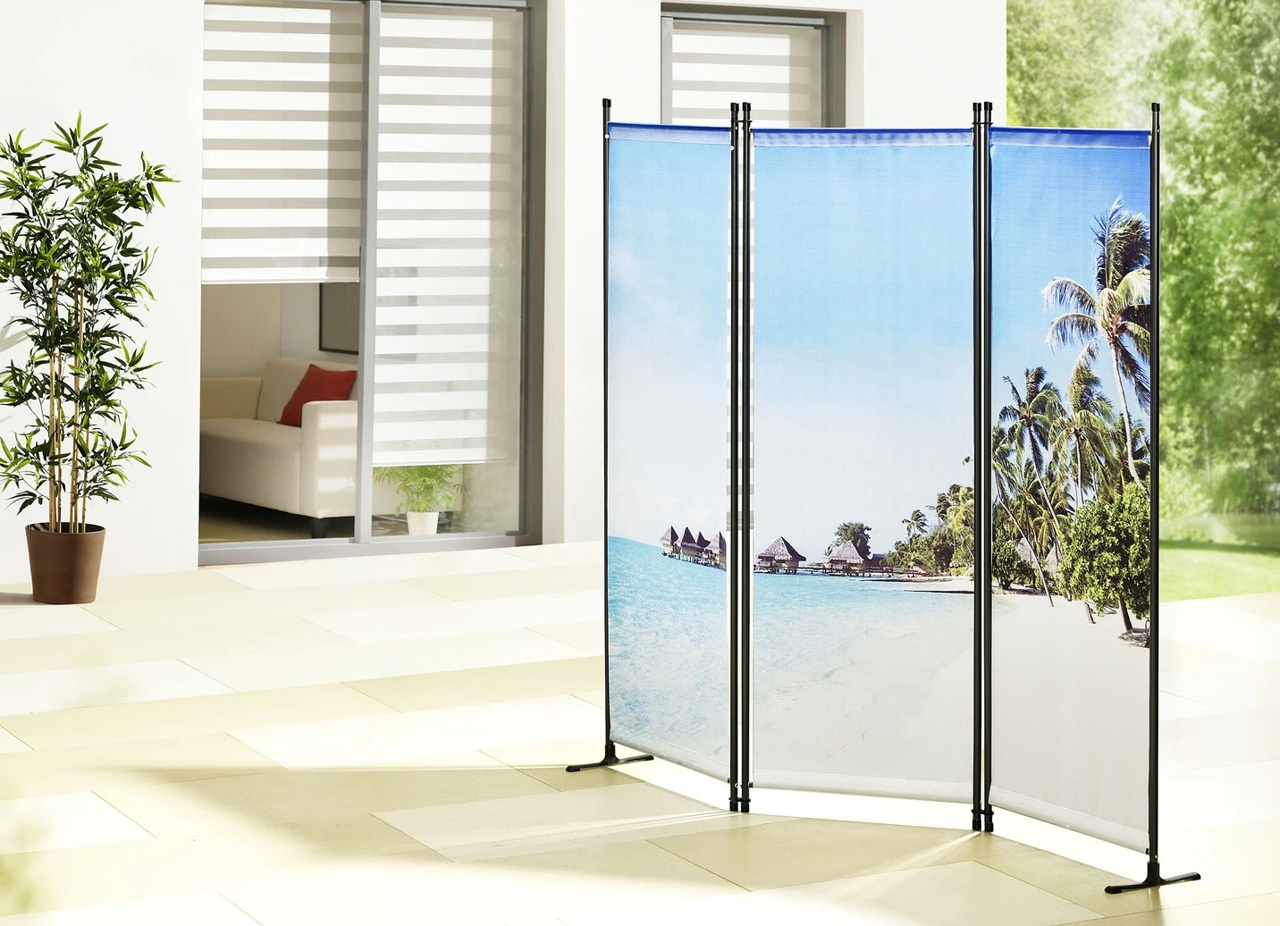 UV-beständiger Paravent mit wunderschönen Motiven in der Ausführung Südsee und in Bunt.
