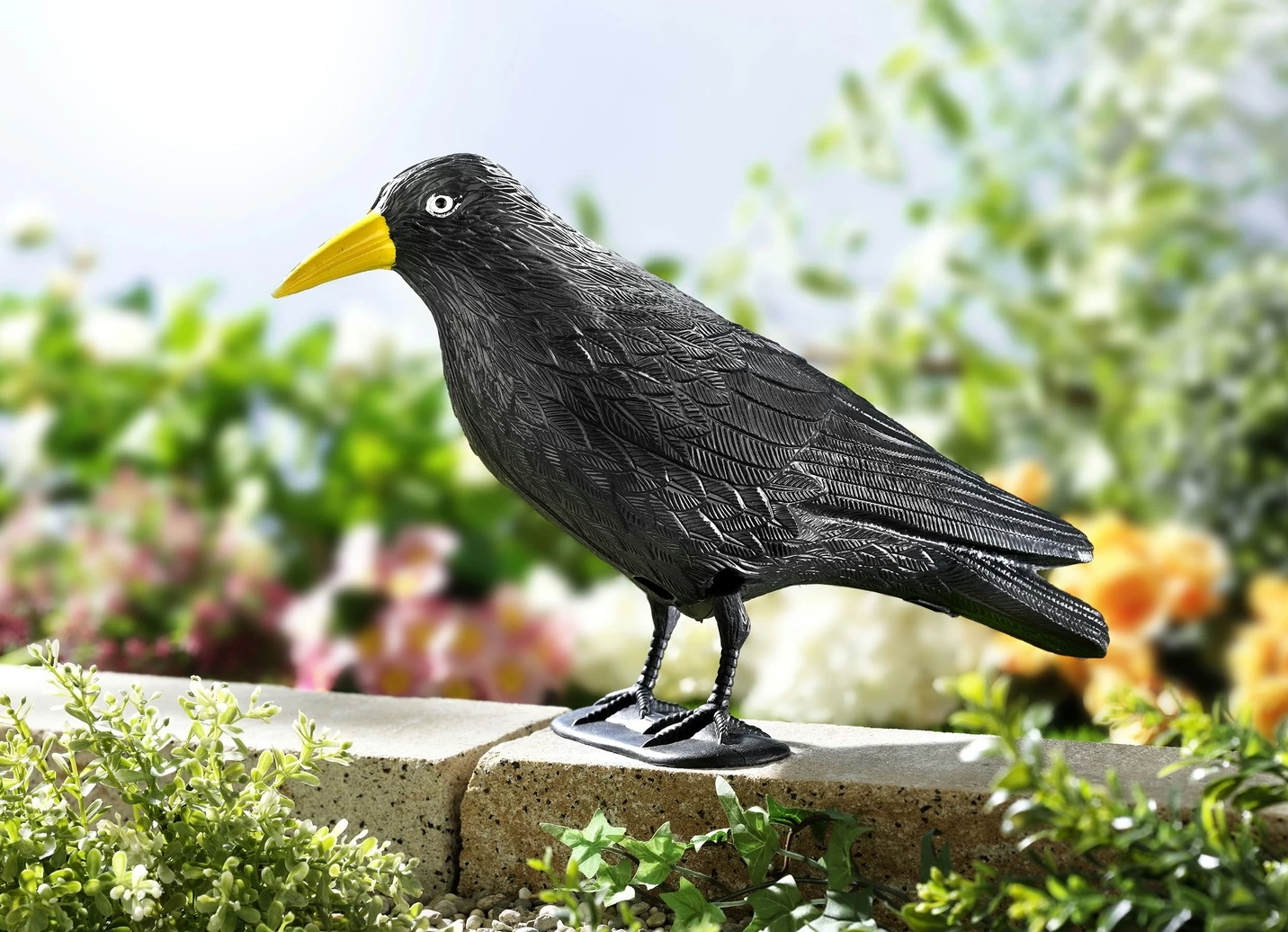Vogelschreck-Rabe aus Kunststoff in Schwarz.