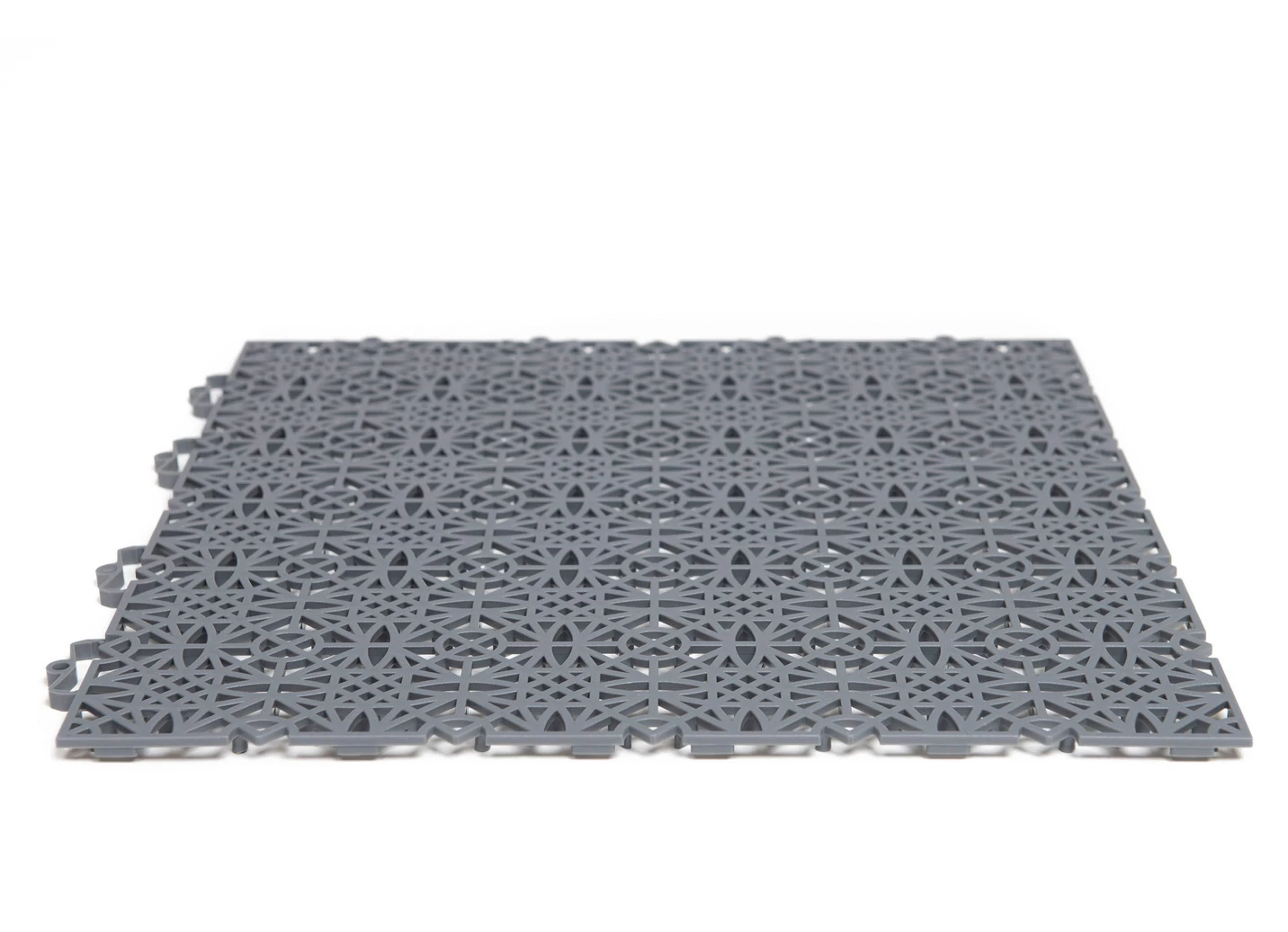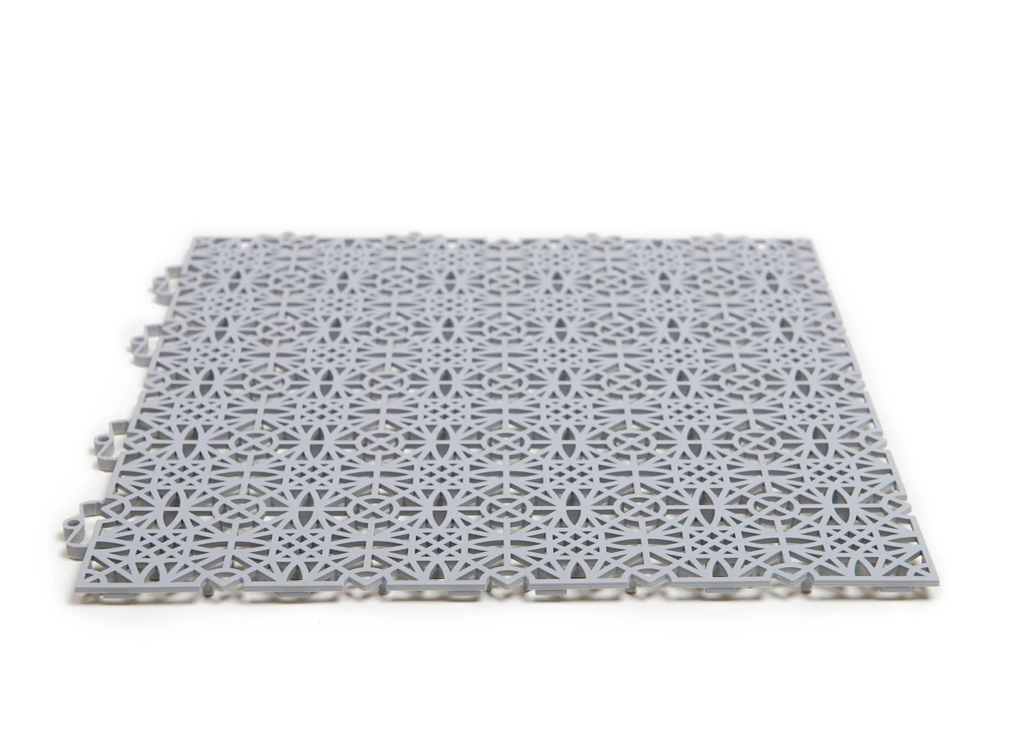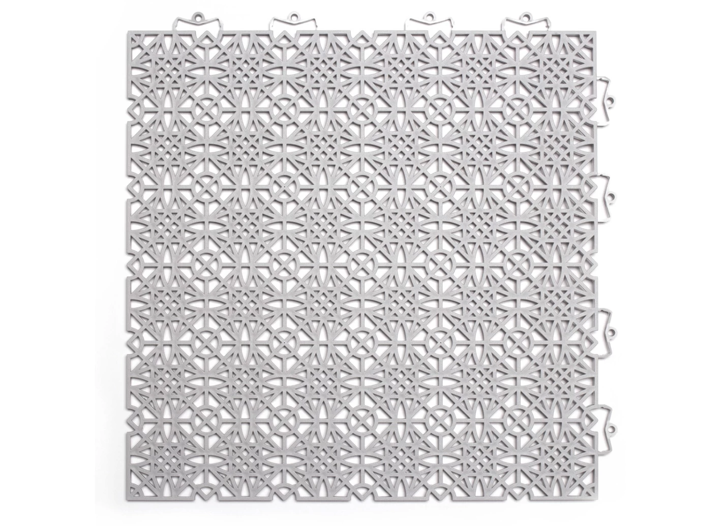 Witterungsbeständige Terrassenfliesen mit Klicksystem in Größe 154 (1 m² = 7 Fliesen) und in Hellgrau.