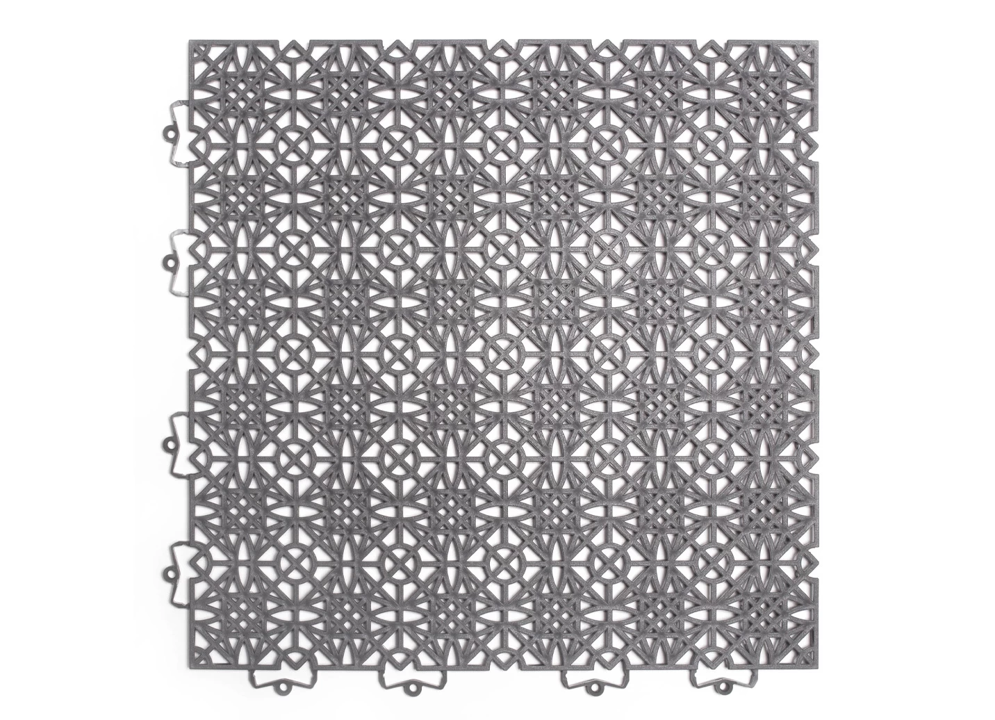 Durch das einfache Klicksystem lassen sich die einzelnen Fliesen mühelos und nahtlos miteinander verbinden. Absolut unempfindlich, frostsicher, UV-beständig und perfekt für draußen geeignet. Mit den farblich perfekt passenden Kanten- und Eckleisten können die Ränder der ausgelegten Fläche mit einem abgeschrägten, stolperfreien Sicherheitsrand versehen werden. Bei Bedarf können die Terrassenfliesen mit einer Handsäge zugeschnitten werden. Qualität: 100% Polypropylen. Maße je Fliese: L38xB38xH1 cm.