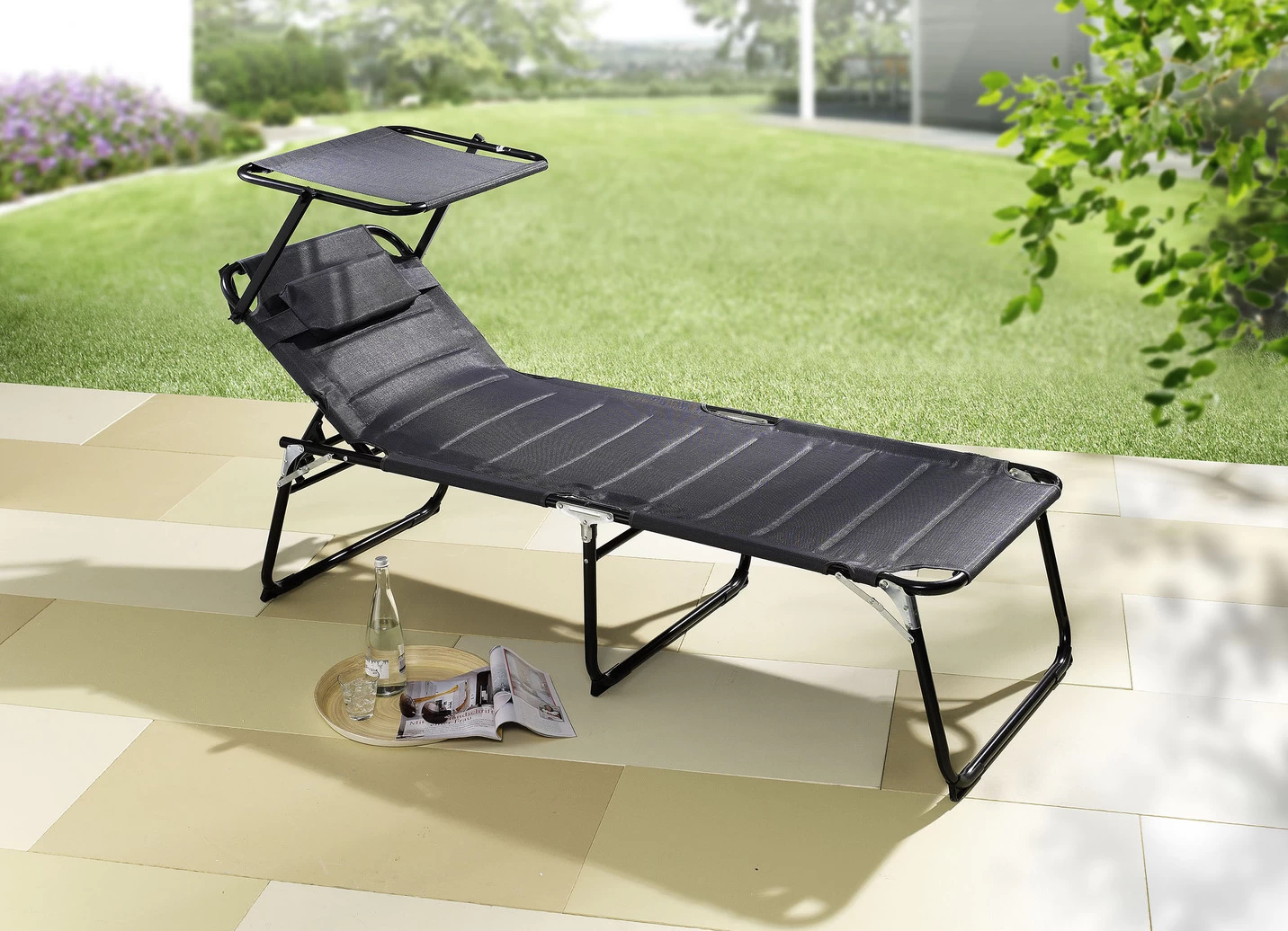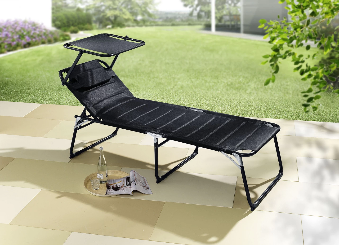 XXL-Liege mit Dach und 4-fach verstellbarer Rückenlehne in Schwarz.