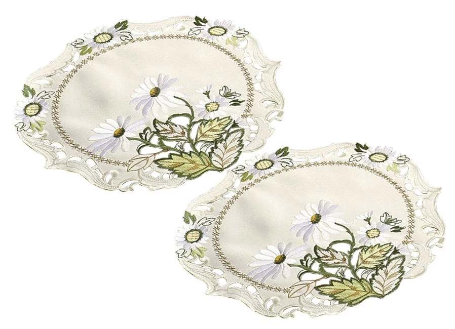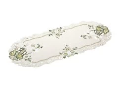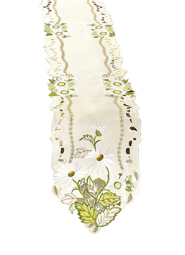 Zarte Gerberas zieren diese Accessoires in Größe 100 (Läufer, 30x 45 cm) und in Ecru-Bunt.